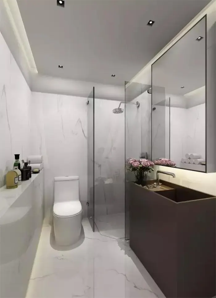일반적으로 네모난 거울은 균형과 질서를 나타내기 때문에 네모난 거울을 선택하는 것이 가장 적합합니다. 따라서 날카로운 모서리나 다각형이 있는 거울은 사용하지 않도록 주의하고, 또한 원형과 타원형의 거울은 모두 사용할 수 있습니다.2. 화장실 문을 마주하지 말라